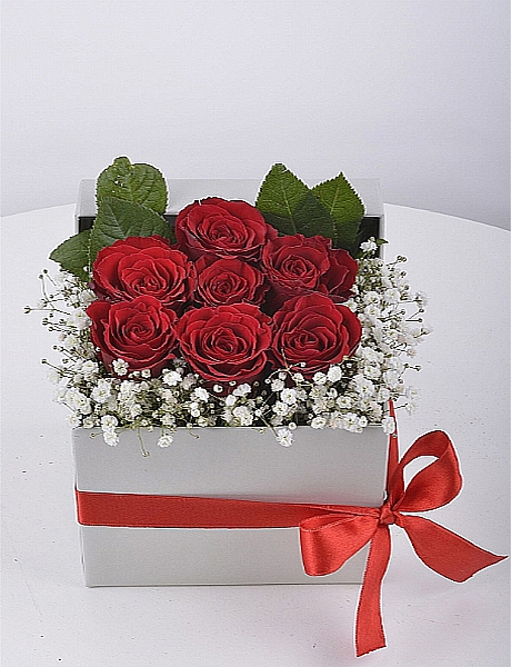 kare kutuda 7 adet kırmızı gül
