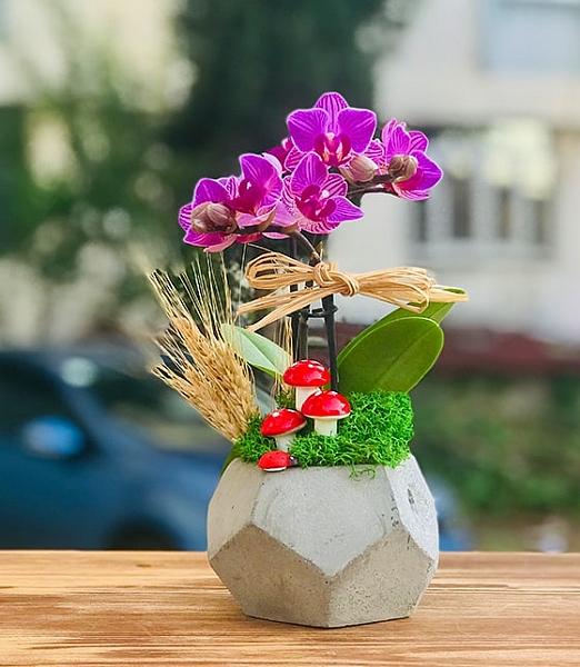 beton prizma saksıda mini orkide