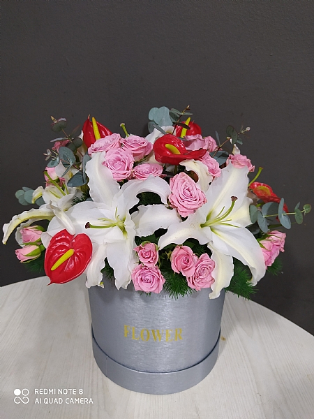 kutuda antorym lily ve güllerden butik çiçek tasarımı